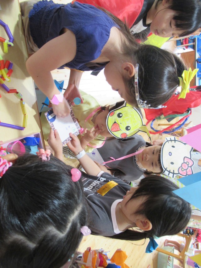 たんたんたんたん たんじょうび♪7月生まれの誕生日♪小さなケーキを囲んでみんなで「おめでとう」 パネルシアターもみんなで見ました。楽しかったね(^_-)-☆ |